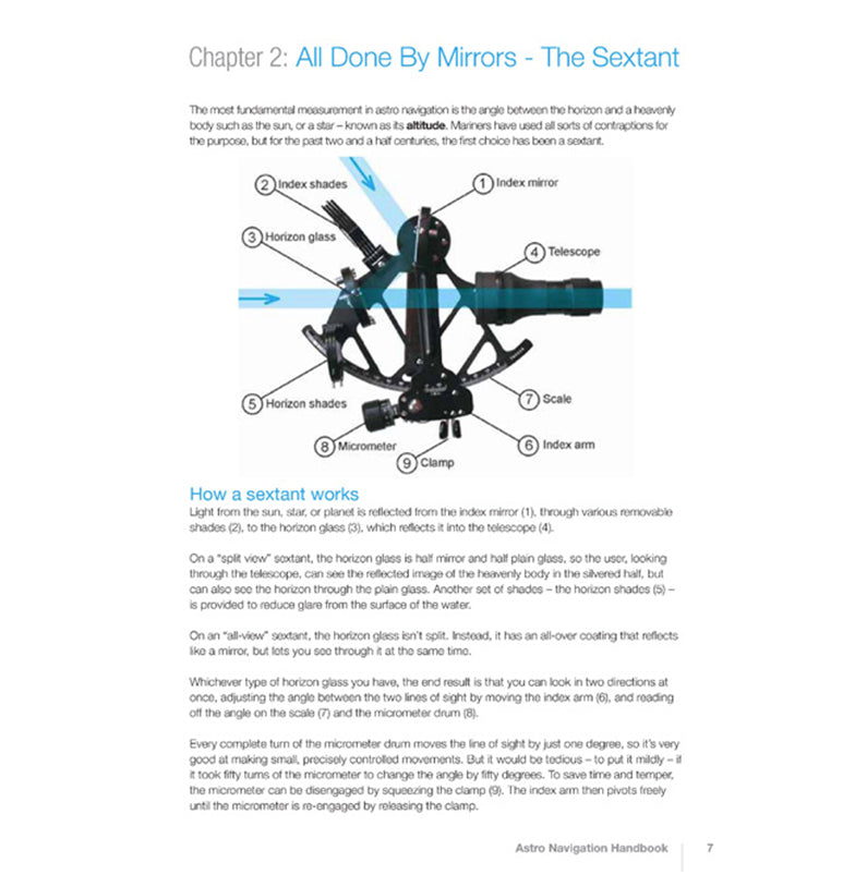 RYA Astro Navigation Handbook is ideal for anyone new to celestial navigation, or wanting to update their Astro skills. It is not a textbook or manual - it is simply a book to enable you to "just get on and do it". It is the course book for anyone taking an RYA Yachtmaster Ocean Theory Course.