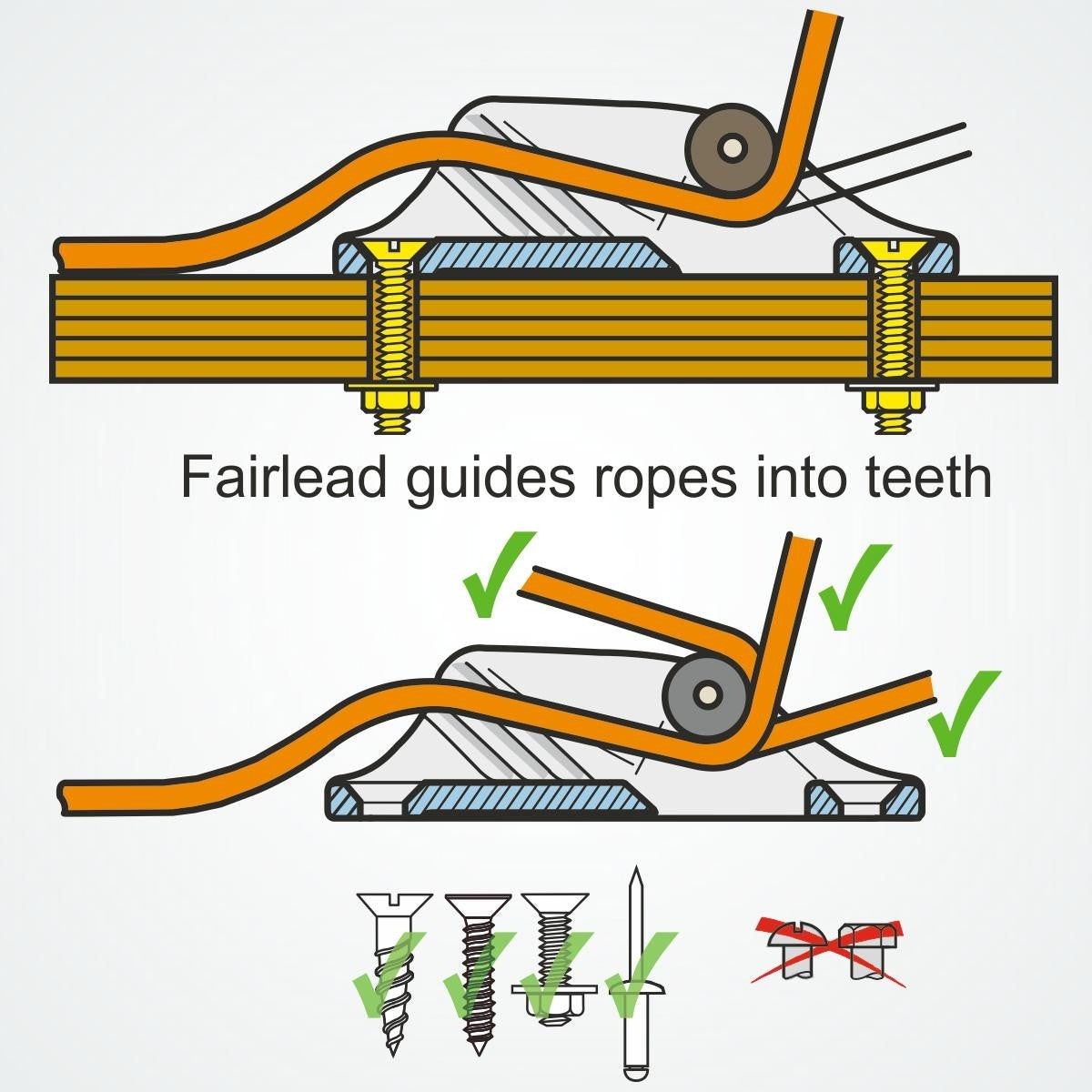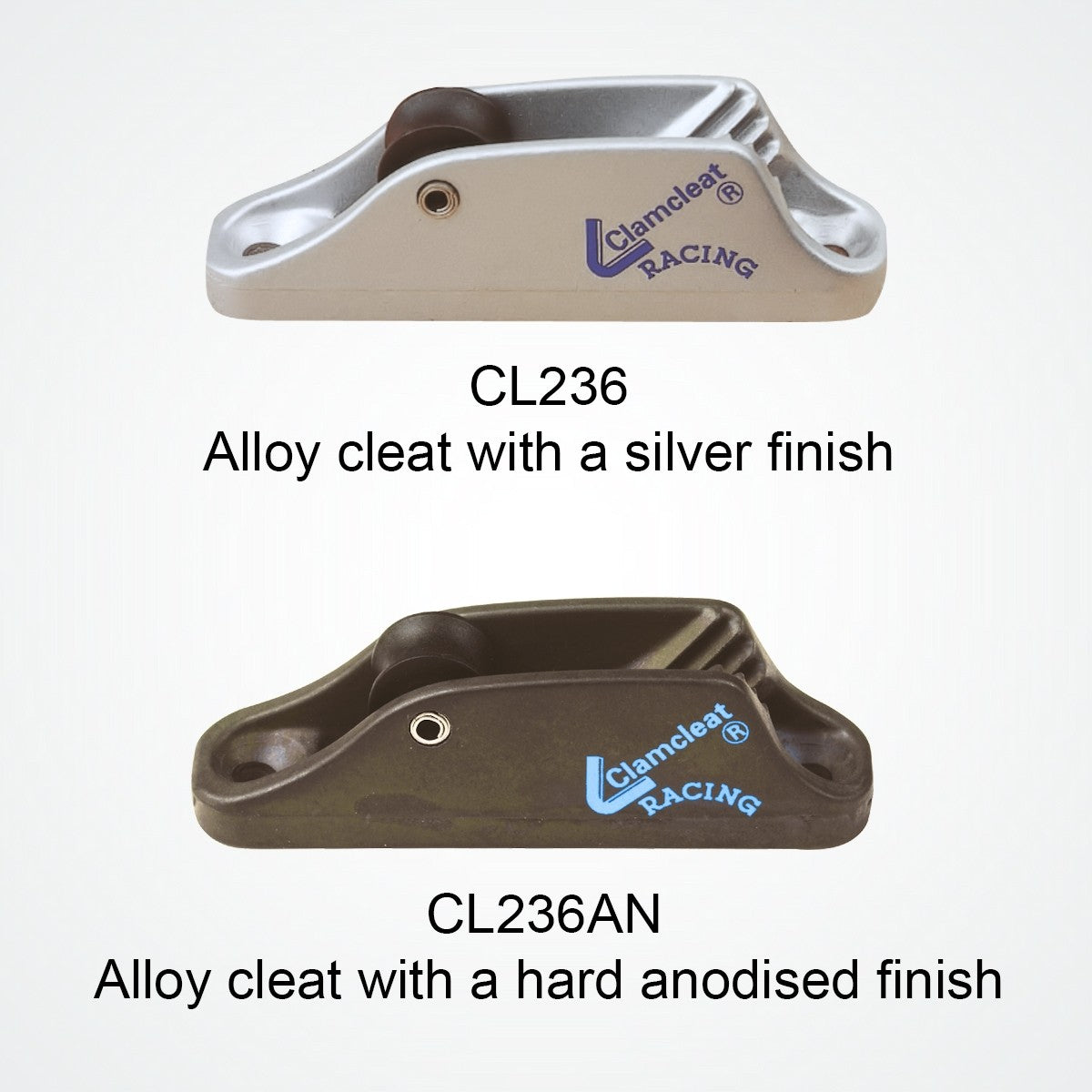 The roller fairlead allows ropes to enter the cleat from above. Ideal for sun umbrellas, shades & sun sails. Also dinghy control lines. Available in two finishes: - CL236 has a silver stove enamel finish for a cost effective, high quality coating. - CL236AN has a hard anodised finish to give a hard wearing surface. A nylon version is available for lower loads - CL203/S1. This cleat can be used for drop-down work surfaces. For instance, Mess Box uses them for their kitchens.